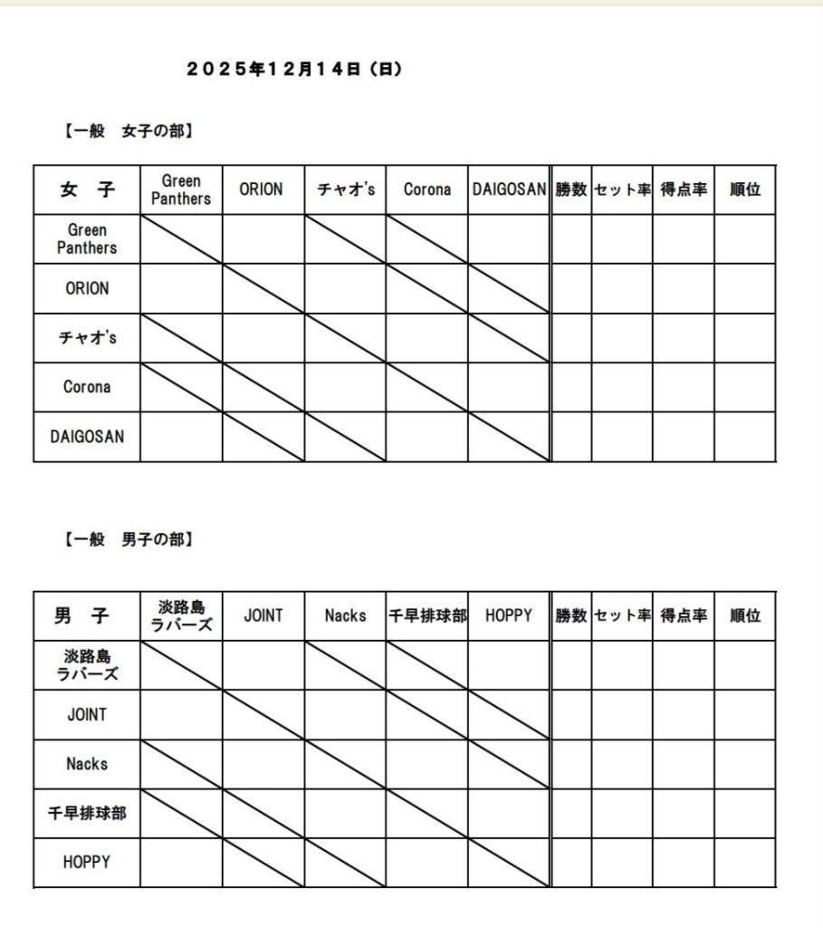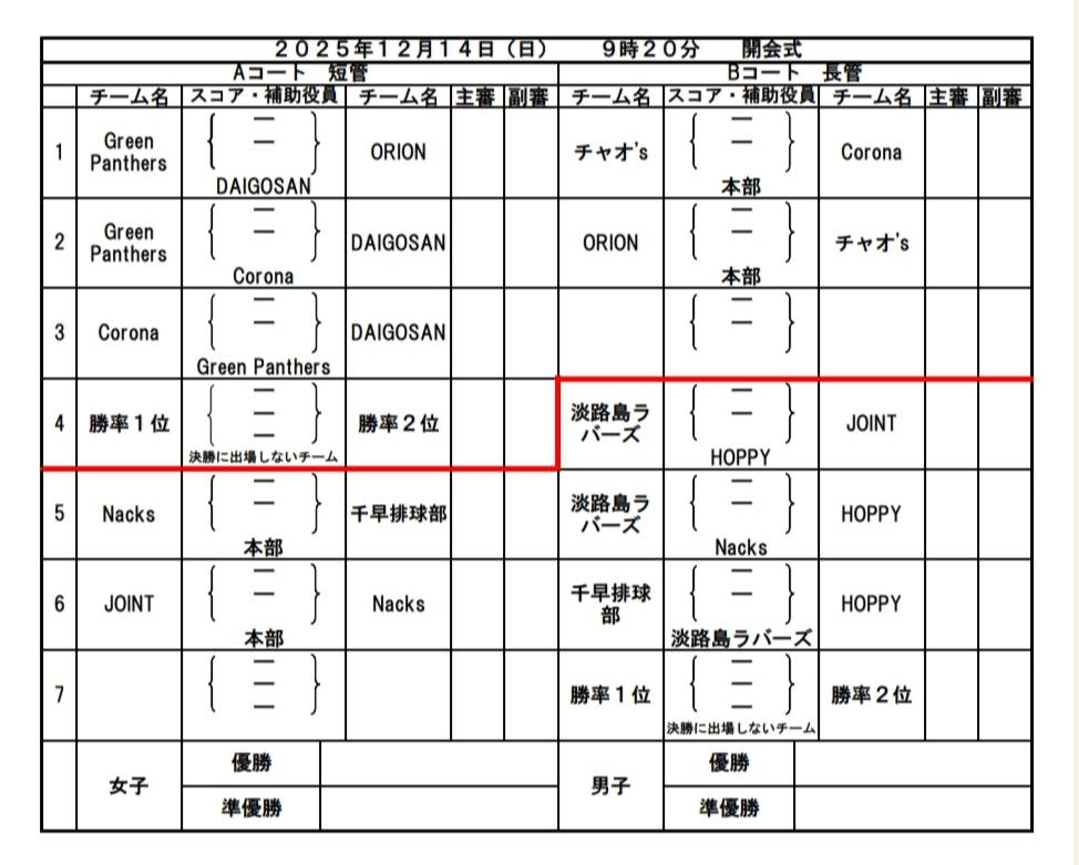 令和7年度種目別6人制大会(男・女)組み合わせ